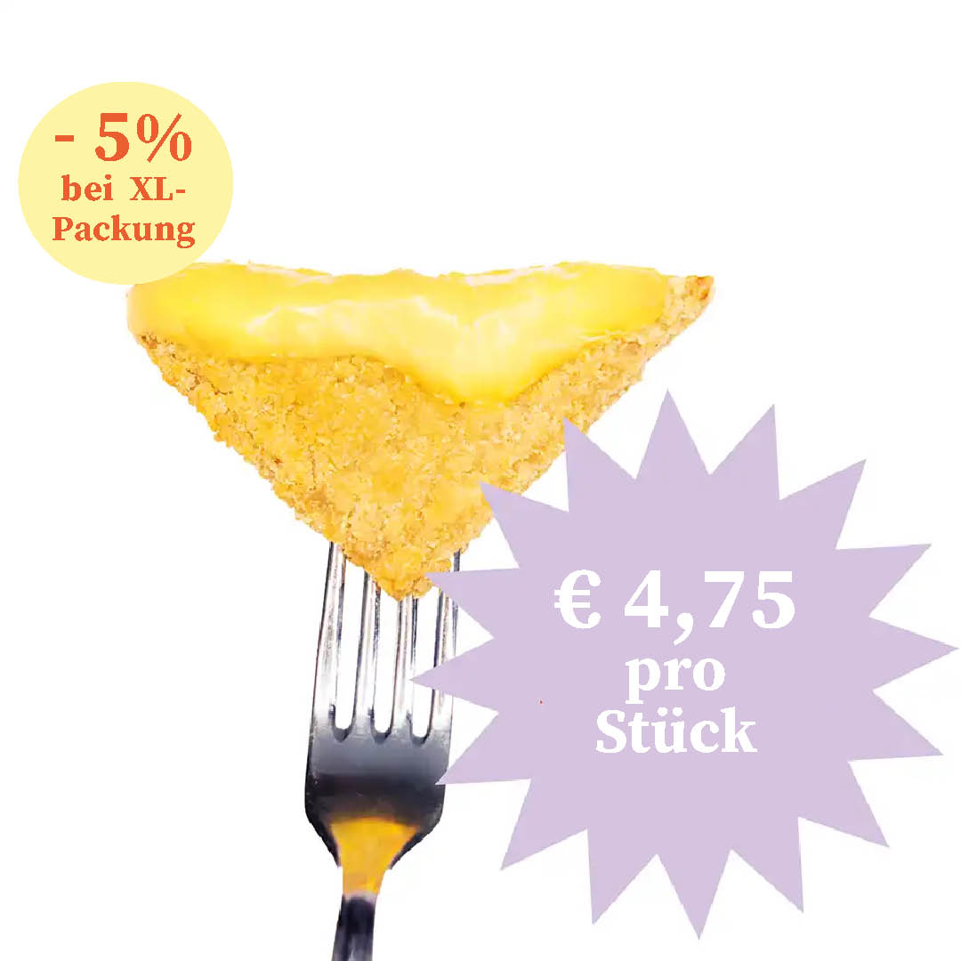 Veganer Schmelz auf Pflanzenfett-Stärkezubereitung, paniert: 50 % Panade (Trinkwasser, WEIZENMEHL, Salz, modifizierte Stärke, Hefe, Gewürze, Verdickungsmittel: Guarkernmehl), 46 % Pflanzenfett-Stärkezubereitung (Trinkwasser, Kokosnussöl, modifizierte Stärke, Speisesalz, Kräuter, Olivenextrakt, Farbstoff: B-Carotin), Raps- u. Sonnenblumenöl; Konservierungsstoff: Kaliumsorbat; Säuerungsmittel: Milchsäure*; *vegan